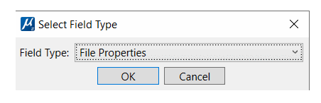 Press the Insert Field button to open the Select Field Type dialog. Choose File Properties …